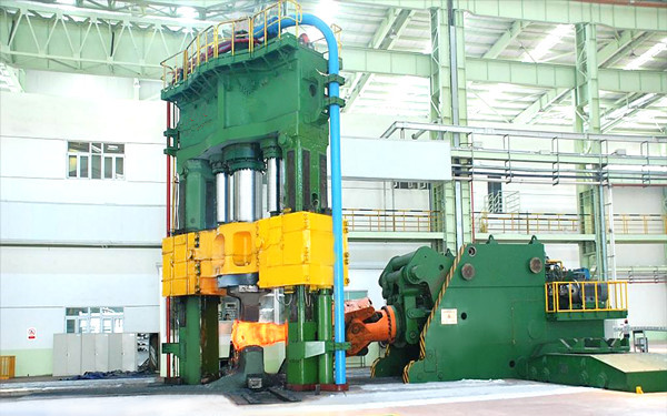 生產(chǎn)能力 / Production Capacity 5000t油壓機(jī) 主要生產(chǎn)設(shè)備 The main production equipment 該設(shè)備主要運(yùn)用于金屬材料自由鍛、模鍛的各種工藝,如:鐓粗、沖孔、馬杠擴(kuò)孔、錯(cuò)移、粗轉(zhuǎn)、切割、彎曲、拔長(zhǎng)等。 最大鍛造100t鋼鍛件。 并有一支從
